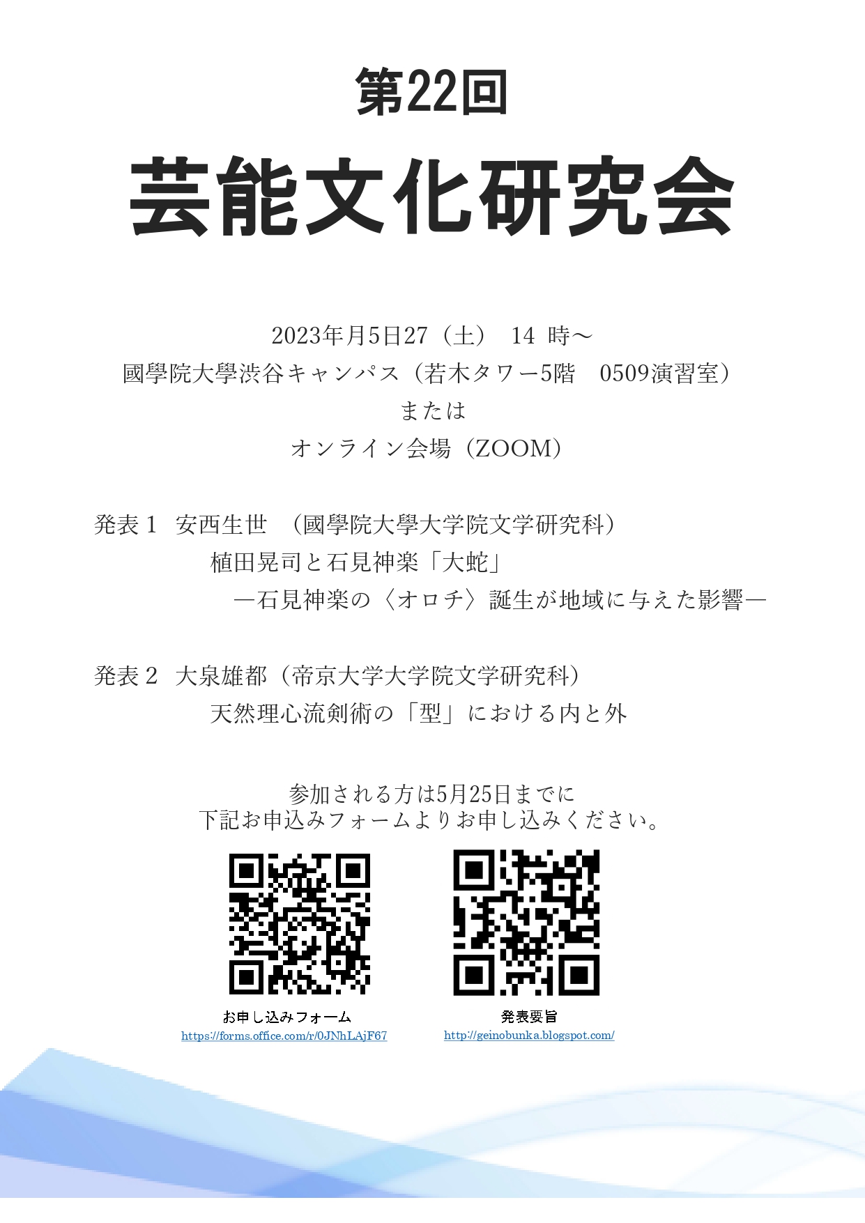 会場:國學院大學渋谷キャンパス(若木タワー5階 0509演習室)